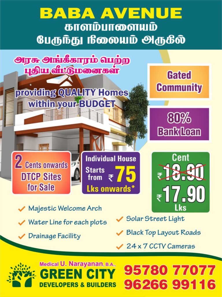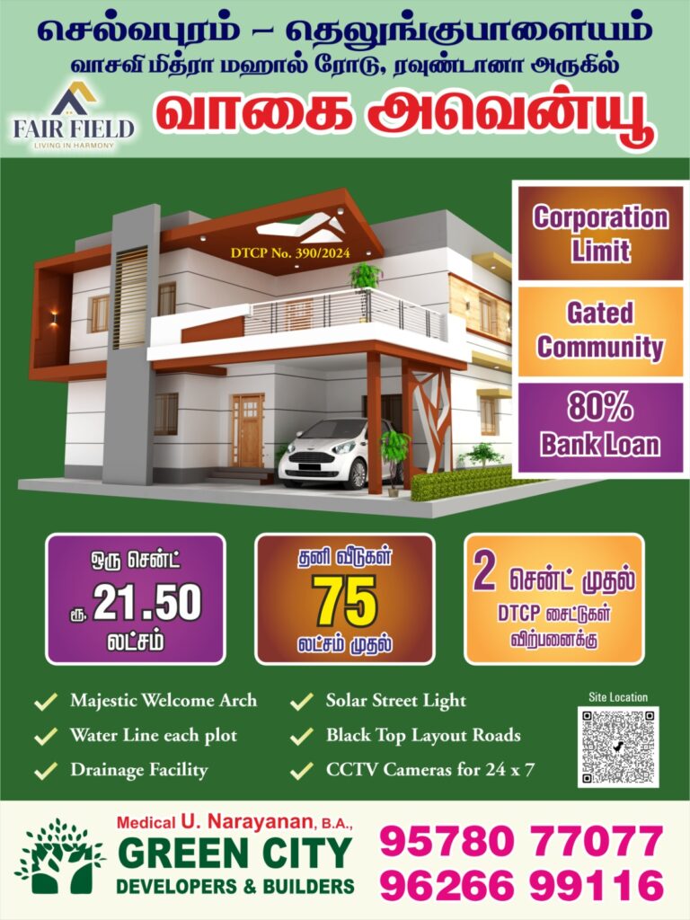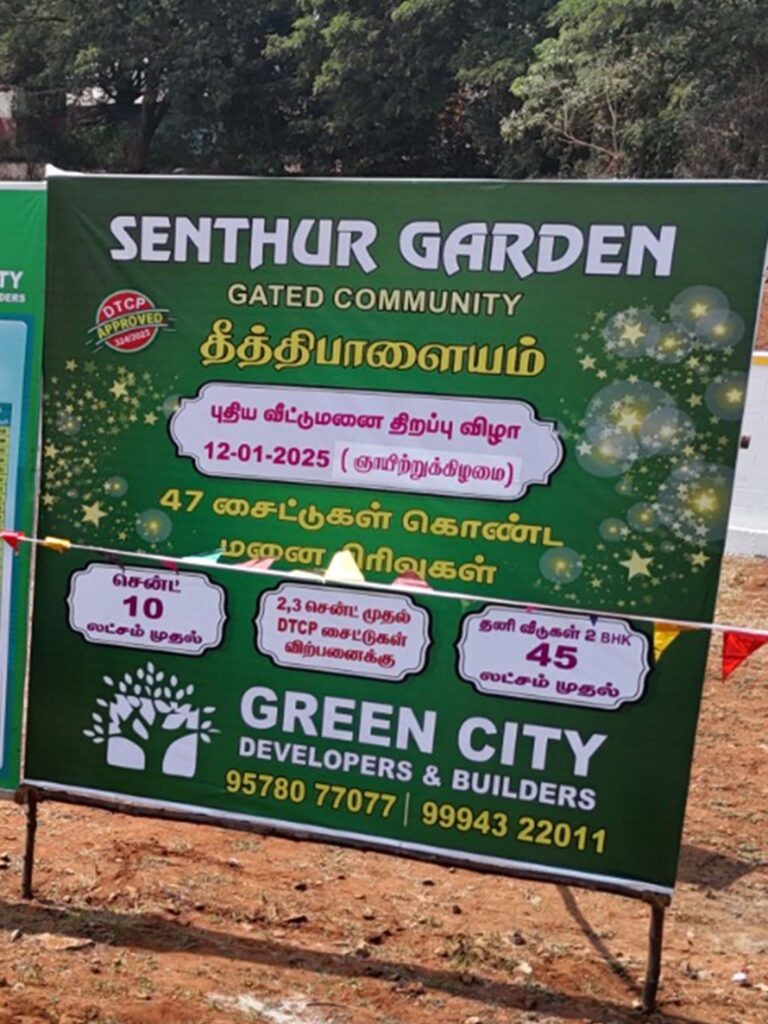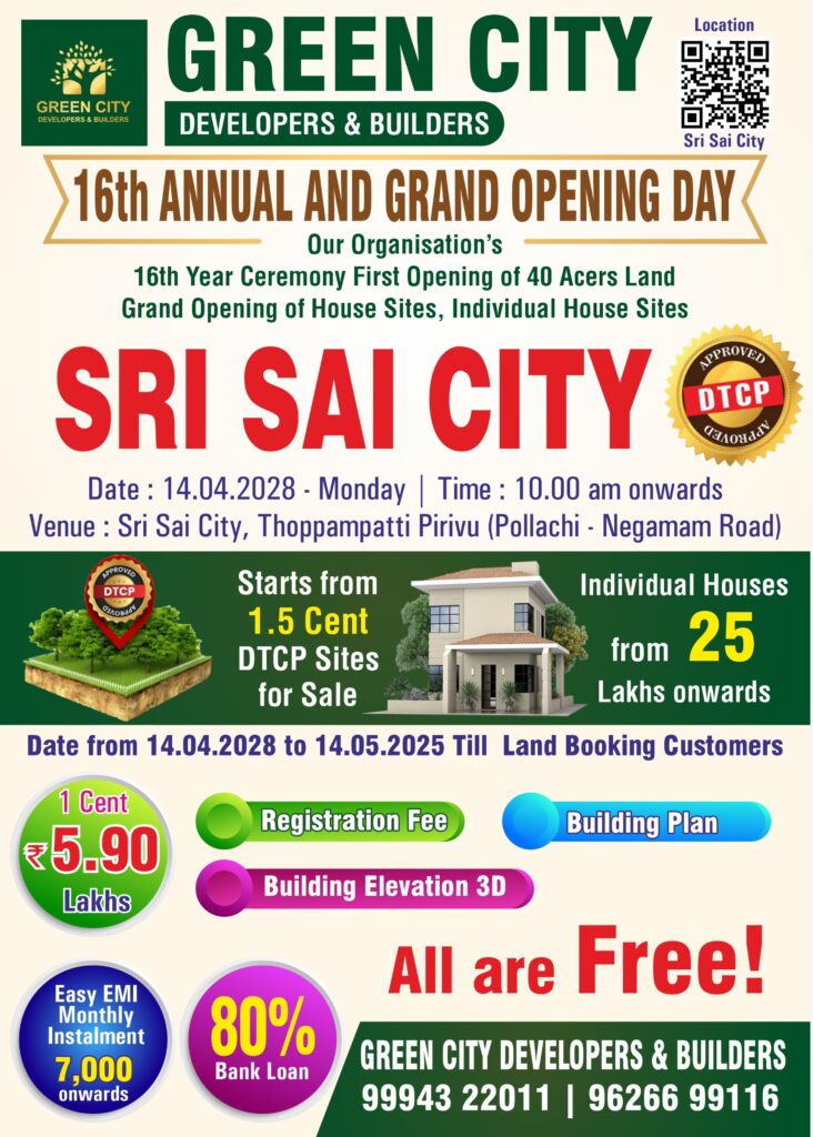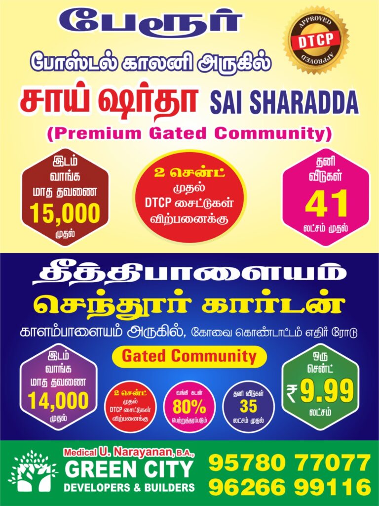 Welcome to Green City Developers and Builders Coimbatore’s trusted name in real estate. With 18+ years of expertise, we offer DTCP & RERA approved plots, homes, and investment ready properties in Coimbatore’s fastest-growing locations.
