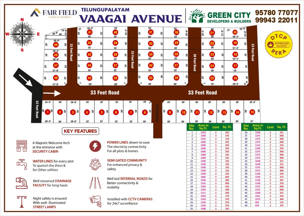 DTCP & RERA Approved – Enjoy complete peace of mind with clear titles and government-approved documentation for a secure and transparent investment.